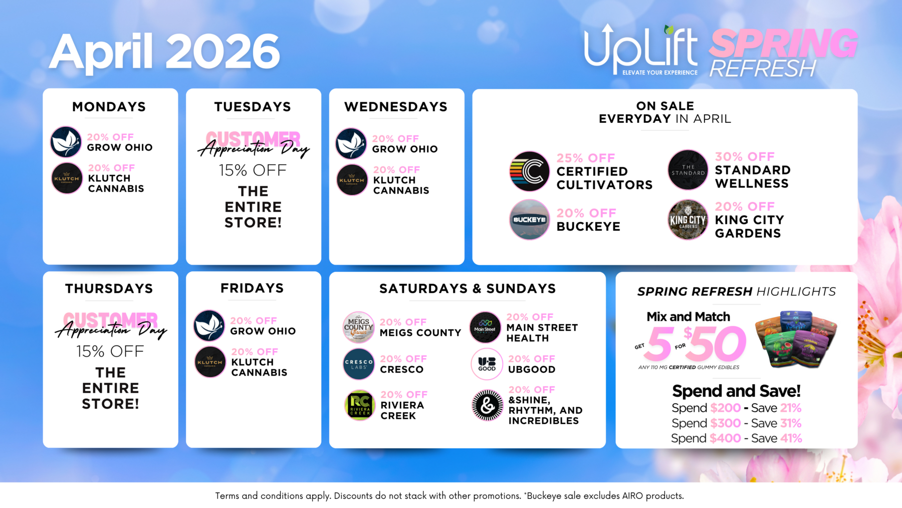 All of our specials can be found on our menu in real time, just navigate to the menu of your favorite UpLift location and check out our sales banners, or hit “specials” near the top.